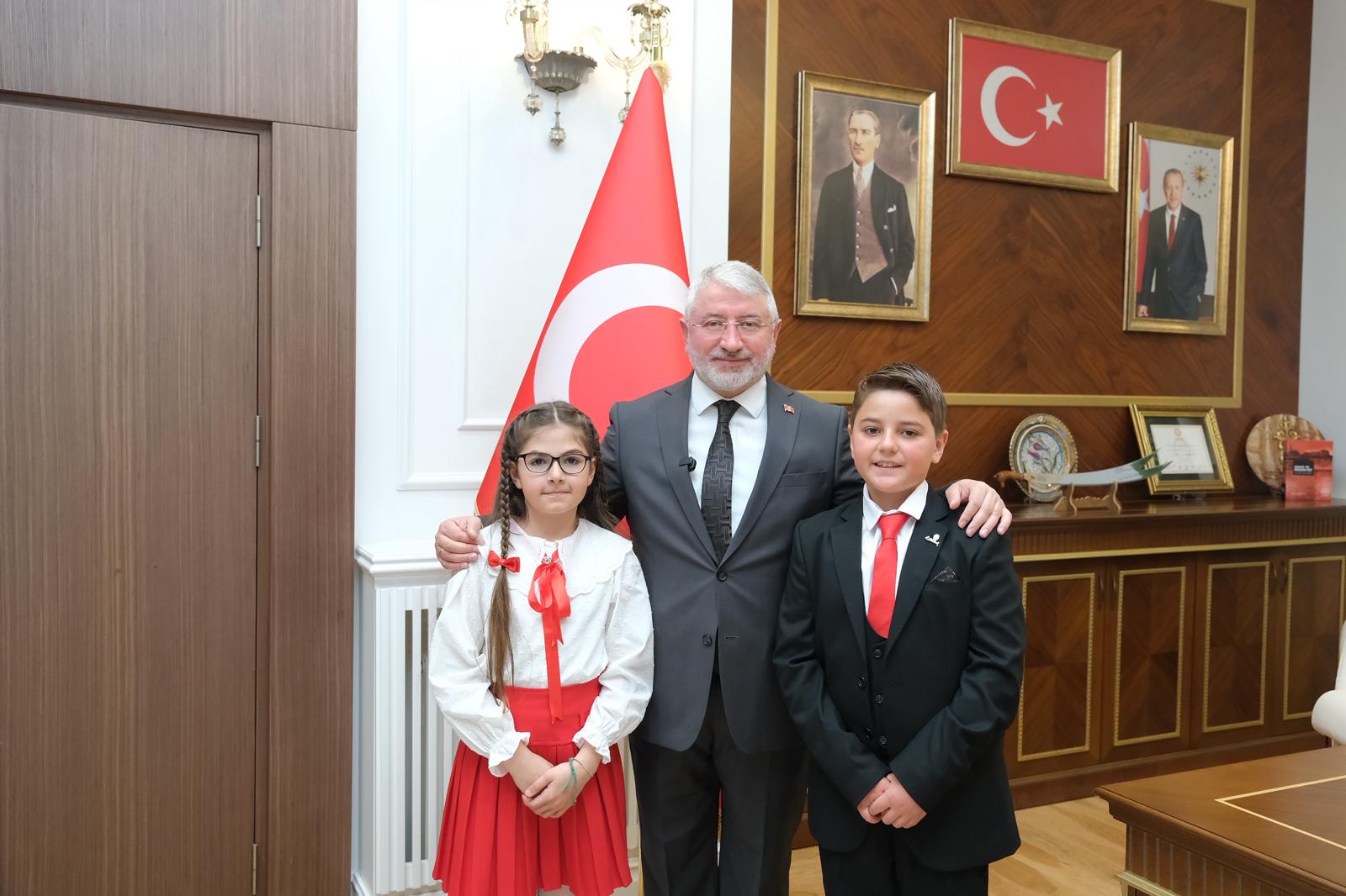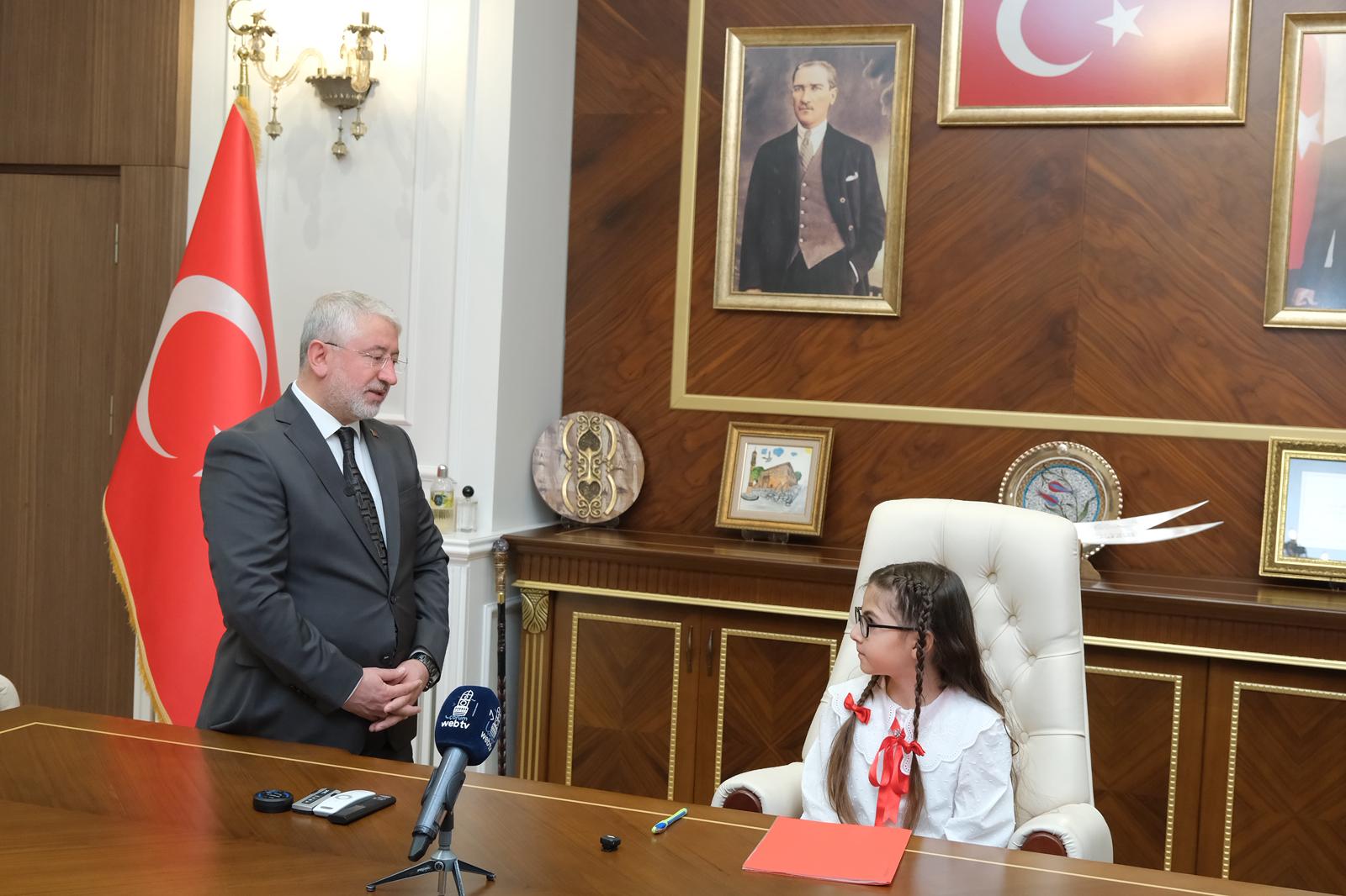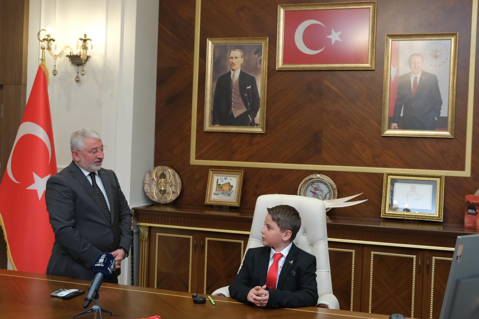 İsmail Kakaç İlkokulu 4. sınıf öğrencileri Zeynep Sözten ve Rüzgar Ali Kışla, günün anlam ve önemine uygun olarak Belediye Başkanı Dr. Halil İbrahim Aşgın’dan başkanlık görevini kısa süreliğine devraldı.