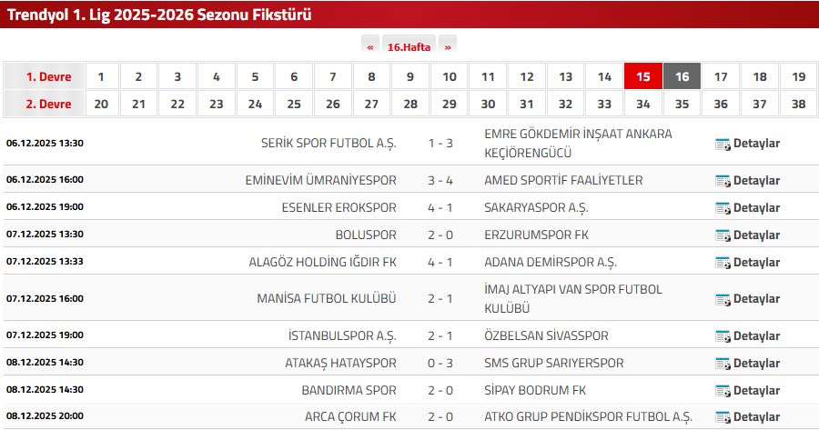 Trendyol 1. Lig'in bir sonraki haftasında Çorum FK, Sivasspor'a konuk olacak. Pendikspor, Iğdır FK'yı ağırlayacak.
