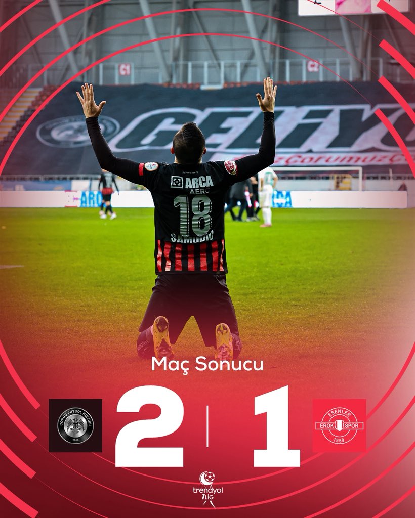 Bu golle Çorum FK sahadan 2-1 galip ayrıldı.