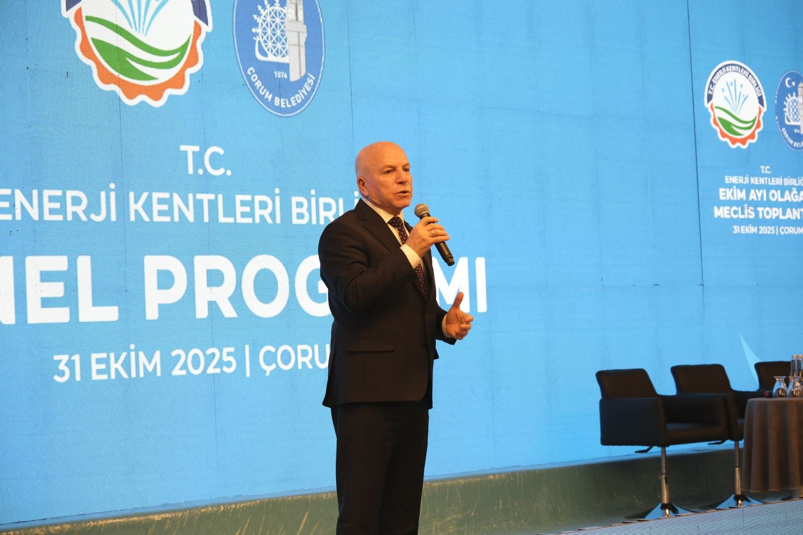 Salonu selamlayarak konuşmasına başlayan Belediye Başkanı Dr. Halil İbrahim Aşgın Çorum'un sanayi, tarım ve kültürel açıdan önemli bir kent olduğunu vurguladı. Başkan Aşgın konuşmasında; 1997 yılında temelleri atılan ve 2019 yılında belediyelerimizin ihtiyaçlarına, günün koşullarına, şehirlerin gelişimine uygun olarak “T.C. Enerji Kentleri Birliği” adını alan bu kıymetli birliğin misyonu hepimiz için büyük anlam taşıyor. Yenilenebilir enerji kaynaklarını çevreye duyarlı ve verimli bir şekilde kullanarak, yerel kalkınmaya, ülke ekonomisine, refahına ve istihdama katkı sunmak; bizim de öncelikli hedeflerimizden biridir. Enerjiyi yalnızca teknik bir mesele olarak görmüyoruz. Enerji, kalkınmadır. Enerji, çevre bilincidir. Enerji, gelecek nesillerin refahıdır.