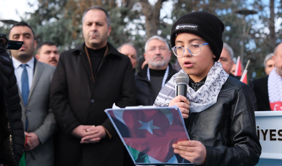 Ancak “Bugün arsızca yalan söyleyen, azgınca katliam yapan İsrail “Filistinli bebeklerden korkuyorlar, 8000’e yakın bebeği, çocuğu katlettilerse bunun içindir. Bombalar altında bile ‘Filistin vatanımız hiçbir yere gitmiyoruz’ diyen Gazzeli mücahitlerden korkuyor.