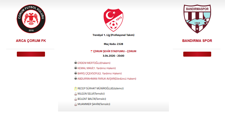 Sarı Kartlar: Dk. 2 Enes Aydın, Dk. 71 Mulumba (Bandırmaspor) Dk. 34 Arda Hilmi Şengül, Dk. 48 Sinan Osmanoğlu, Dk. 90+1 Üzeyir Ergün (Çorum FK)