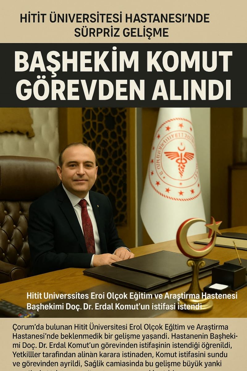 Hitit Üniversitesi Erol Olçok Eğitim ve Araştırma Hastanesi Başhekimi Doç. Dr. Erdal Komut'un istifasının istendiği, Başhekim Komut’un da istifasını verdiği öğrenildi.