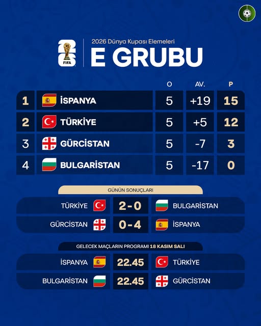 Sondakika Haber: FIFA 2026 Dünya Kupası Avrupa Elemeleri E Grubu'nda 5. maçların ardından puan durumu netleşti. A Millî Takım, ikinciliği garantileyerek Play-Off biletini cebine koydu.