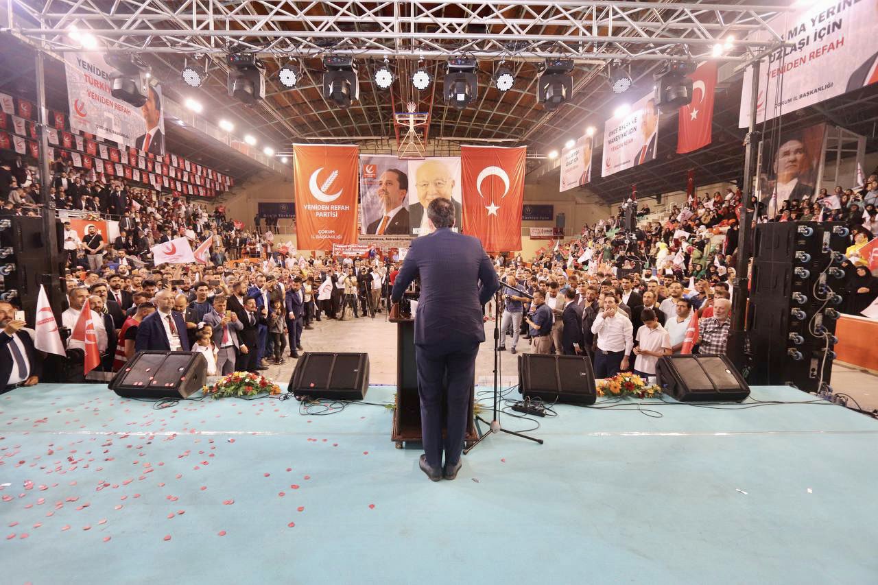 - Yeniden Refah Partisi Genel Başkanı Dr. Fatih Erbakan, partisinin Çorum İl Kongresi’ne katıldı. Erbakan, burada partililere seslendi. “Bizim sadece seçmenlerimizi yok Refah Partisi olarak inananlarımız var” diyen Erbakan, “Erbakan hocamız ne diyordu 'Eğer inanır ve çalışırsak Allah bize yardım eder, Allah bize yardım ederse kimse bize galip gelemez' diyordu. Birçok partinin kongresinden daha büyük ve muazzam gerçekleştirilen Çorum kongresi Allah’ın bizimle beraber olduğunun göstergesidir. Holdinglerimiz olmadan, gazetelerimiz, televizyonlarımız olmadan, hazine yardımı olmadan, iktidar gücü almadan, dış güçlerin desteği olmadan, bazılarına yaptıkları gibi cilalayıp, parlatma operasyonları olmadan imanla, aşkla, azimle yeniden Refah Patimizi bu noktaya taşıdık” diye ifade etti...